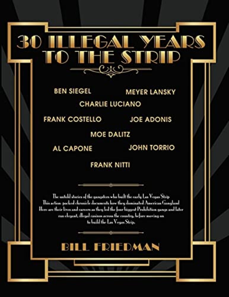 30 Illegal Years To The Strip is the inside story of Prohibition's most powerful leaders, who later ran elegant, illegal casinos across America, before moving on to build the glamorous Las Vegas Strip gambling resorts. The seven leaders of the three dominating Prohibition gangs imported the world's finest liquors on a massive scale. Although in an illegal and dangerous business, these seven espoused traditional business values and rejected the key tools of organized crime - monopoly, violence, and vendetta. This made them the most unlikely gangsters to rise to underworld leadership. But they earned every criminal's respect, and fate made them the most powerful gangland leaders in American history. In the mid 1900s, these seven leaders stood up to, and restrained, America's worst villains. The seven prevented many gangland wars and killings. Unbelievably, the most murderous and most psychopathic gang leaders not only admired them but supported them in gangland conflicts. These were the first gangs to work closely together in mutual interest. Joining these three dominating liquor-importers was the violent Chicago Capone gang, as they partnered in both illegal and legal businesses during and after Prohibition. They were also close allies in the complexities, treachery, and violence of underworld politics. Exposed for the first time are the roles actually played by gang leaders Ben Siegel, Meyer Lansky, Charlie Luciano, Frank Costello, Joe Adonis, Al Capone, John Torrio, Frank Nitti, and Moe Dalitz. Some of these seven leaders became powerful overworld political kingmakers. Allied with them in New York City politics was Arnold Rothstein, the ultimate gambler. His murder is one of several major gangland killings finally solved here. The biggest-drawing entertainer in these gang leaders' illegal-casino and Strip-resort showrooms was comedian Joe E. Lewis. He single-handedly saved the Copacabana from bankruptcy and turned it into America's most famous and glamorous nightclub. The careers and relationships of the gang leaders, who together would go on to build the Las Vegas Strip, are presented for the first time in this thoroughly documented, in-depth, authentic history of how organized crime developed. It contains 546 source notes, and many addendums that expose the serious fallacies and outright fictions of previous books about early organized crime. This book is based on 48 years of research that began, when the author was drafted during the Vietnam War. A conscientious objector, he was ordered to spend his alternative service in Las Vegas hanging out with gangsters to study the history and operation of organized crime. (More info about this government-ordered study in About The Research at www.BillFriedmanAuthor.com)