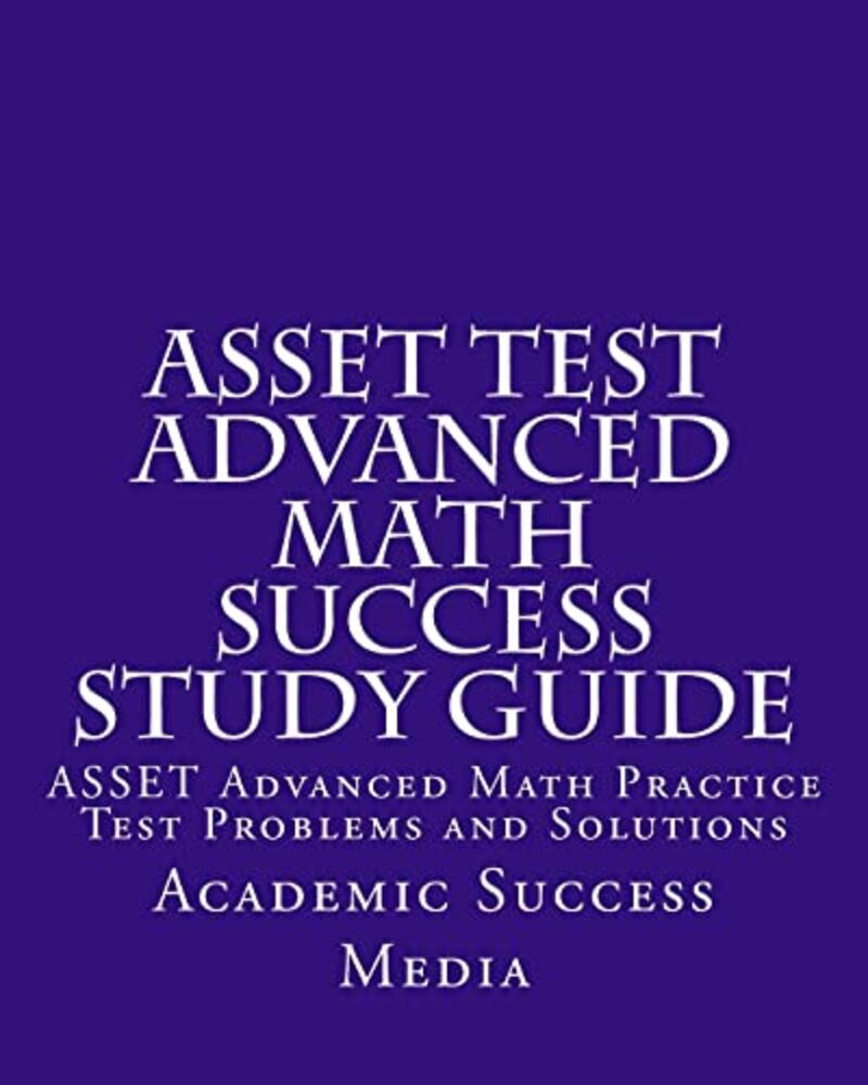 The ASSET Test Advanced Math Success Study Guide consists of three parts: Part 1: Skills Overview and Formulas - Provides practice test problems in each of the skill areas, with in-depth illustrations of how to solve each kind of problem Part 2: 100 Asset Advanced Math Practice Test Problems - Contains Elementary and Intermediate Algebra, College Algebra, and Geometry Problems, like the real exam Part 3: Step-by-step solutions to the 100 advanced math problems - Shows how to solve each problem with clear explanations and solutions The questions in this publication contain the same types of math problems with the same level of difficulty that you will encounter on the actual ASSET test. For a list of the individual math skills covered in the book, please use the "Look Inside" function at the left-hand side of the screen to view the table of contents. You may also be interested in our other publications: ASSET Test Numerical Skills Success Study Guide ASSET Test Reading and Writing Skills Success Basic Skills Practice Tests