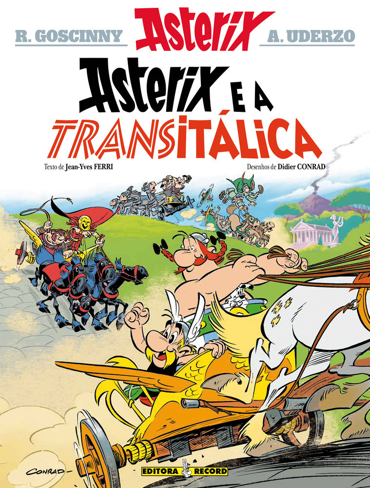 Asterix e Obelix estão de volta em Asterix e a Transitálica, o álbum número 37 dos irredutíveis gauleses assinado pelos talentosos Jean-Yves Ferri e Didier Conrad. Apesar do que Obelix possa pensar, os itálicos, habitantes de Itália, não são todos romanos, pelo contrário! Assim como os irredutíveis gauleses, os itálicos pretendem preservar a sua autonomia e veem com maus olhos as veleidades de conquista de Júlio César e das suas legiões. Para acalmar os ânimos, César decide promover uma corrida de bigas com representantes de todo o Império. Mas, como não podia deixar de ser, o monarca quer que um romano vença. É uma tarefa fácil para quem tem o senado no bolso. Com a ajuda de um senador inescrupulos, César tenta forçar a vitória do corredor mascarado, Coronavírus. Mas nossos heróis têm outras ideias.Famosos pelas suas numerosas viagens através do Mundo Conhecido, Asterix e Obelix embarcam, desta vez, em uma aventura emocionante à descoberta de uma Itália surpreendente e antiga! Criada pela dupla Albert Uderzo e René Goscinny, a primeira história das Aventuras de Asterix, O Gaulês foi publicada na página da 20 da revista Pilote em 1959. A história dos Irredutíveis Gauleses foi um sucesso imediato e a revista vendeu mais de 300mil exemplares. Tamanha popularidade rendeu, em 1961, a publicação do primeiro álbum solo: Asterix, o Gaulês. Desde então, Asterix não para de crescer: são mais de 30 álbuns traduzidos para 107 idiomas, mais de 10 filmes e um parque temático! As aventuras de Asterix são publicadas no Brasil pela Editora Record desde 1980. “Uderzo faz parte do seleto grupo de artistas de quadrinhos que criou um visual único e plenamente reconhecível para um grupo de personagens. As roupas, cabelos, barbas e bigodes dos gauleses são uma marca registrada. Num imaginário hall da fama de HQ, teriam lugar entre os garotos cabeçudos de Mauricio de Sousa e o icônico uniforme do Homem-Aranha criado por Steve Ditko.” – Thales de Menezes para Folha de S.Paulo “A popularidade duradoura do Asterix intrigou os críticos por décadas, mesmo quando a série ultrapassou a marca de 380 milhões de livros, foi traduzida para 111 idiomas e gerou dezenas de adaptações em várias mídias. Na França, Asterix é um ícone precioso, o sucesso mundial que é uma fonte de orgulho nacional.” – NPR “Pode ter mais de cinquenta anos de idade, mas, mesmo assim, ainda é muito engraçado.” – The Week Junior Albert Uderzo nasceu em Fismes no dia 25 de abril de 1927. Desde o jardim de infância, manifestou uma espantosa aptidão para o desenho. No início dos anos 1940, começou a trabalhar para diversas revistas, criando e desenhando novos heróis. Conheceu Goscinny em 1951 e, dessa amizade, nasceu a primeira tirinha das Aventuras de Asterix, o Gaulês. Durante algum tempo, os dois autores continuaram algumas séries, individualmente ou em conjunto. Mas a partir do álbum O escudo arverno, Albert Uderzo decidiu dedicar-se exclusivamente ao pequeno herói gaulês. Em 1977, com a morte de Goscinny, aos 51 anos, Uderzo decidiu continuar o projeto sozinho. Albert Uderzo faleceu no dia 24 de março de 2020 em Neuilly-sur-Seine. René Goscinny nasceu em Paris, em 14 de agosto de 1926. Nos anos 1940, após algumas experiências sem futuro, tornou-se desenhista assistente numa agência de publicidade. Mais tarde, foi contratado por um uma agência de notícias e recebeu sua primeira missão: buscar ilustrações de um tal Albert Uderzo. Os dois homens tornam-se inseparáveis! Juntos, multiplicam projetos. Muitos heróis nascem desta colaboração, entre os quais Humpá-pá, considerado por muitos como um herói precursor de Asterix. Goscinny passou a colaborar em muitas histórias em quadrinhos: em Asterix, obviamente, mas também Iznogoud, O Menino Nicolau, Lucky Luke, Valentin, Les Dingodossiers. René Goscinny faleceu no dia 5 de novembro de 1977 em Paris. Didier Conrad nasceu em 6 de maio de 1959 na cidade de em Marselha. No começo da década de 1980, tornou-se conhecido por sua série Les Innommables. Em 10 de outubro de 2012 foi anunciado como sucessor de Albert Uderzo para assumir a publicação de Asterix juntamente com o escritor Jean-Yves Ferri. A dupla é responsável pela história dos gauleses desde a publicação do álbum nº 35, Asterix entre os Pictos. Jean-Yves Ferri nasceu em 20 de abril de 1959 na cidade de Argel. É roteirista de histórias em quadrinhos e escritor, tendo publicado mais de 10 obras e recebido o Grand Prix de L'Humour Noir (2005) e o Prix Jacques Lob (2008). Em 10 de outubro de 2012 foi anunciado para assumir a publicação de Asterix juntamente com o desenhista Didier Conrad. A dupla é responsável pela história dos gauleses desde a publicação do álbum nº 35, Asterix entre os Pictos.