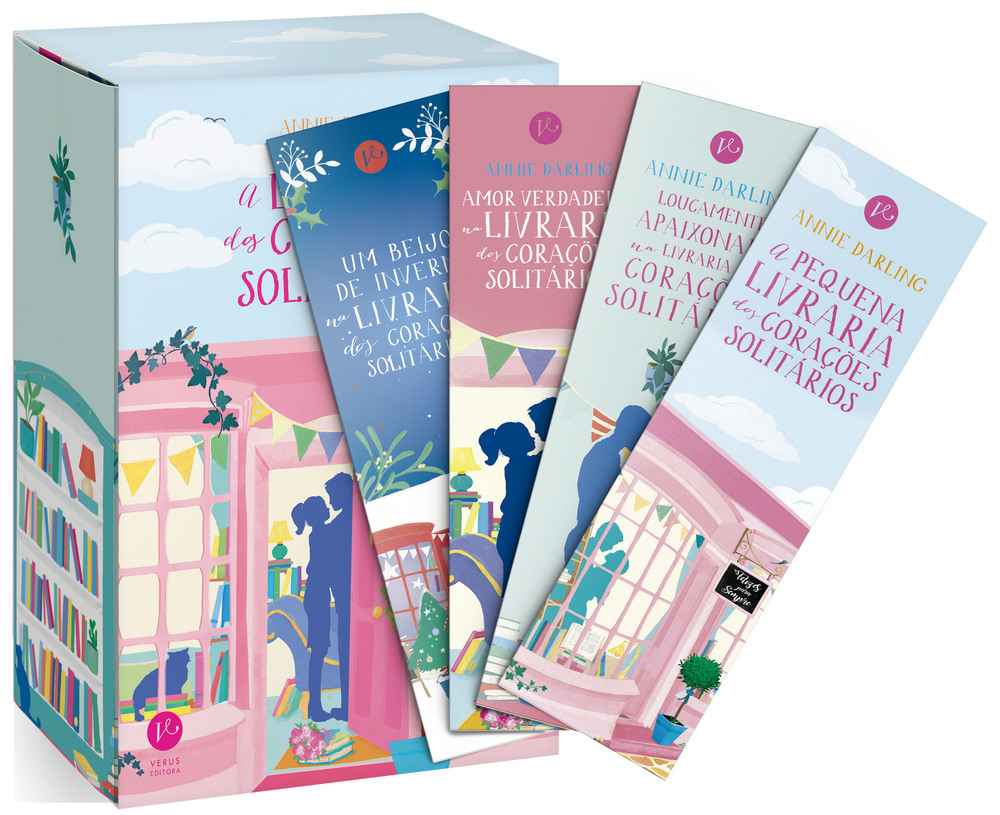 Deixe-se envolver pela livraria Felizes Para Sempre e seus funcionários, com histórias amor de derreter o coração. A série A Livraria dos Corações Solitários agora em um box encantador, incluindo marcadores e cartela de adesivos exclusiva para deixar os fãs ainda mais apaixonados. A pequena livraria dos corações solitários (308 págs.) Era uma vez uma pequena livraria em Londres, onde Posy Morland passou a vida perdida entre as páginas de seus romances favoritos. Quando a excêntrica dona da Bookends, morre e deixa a loja para Posy, ela se vê obrigada a colocar os livros de lado e encarar o mundo real. Porque Posy não herdou apenas um negócio quase falido, mas também a atenção indesejada do neto de Lavinia, Sebastian, conhecido como o homem mais grosseiro de Londres.Posy tem um plano astucioso e seis meses para transformar a Bookends na livraria dos seus sonhos — isso se Sebastian deixá-la em paz para trabalhar. Enquanto Posy e os amigos lutam para salvar sua amada livraria, ela se envolve em uma batalha com Sebastian, com quem começou a ter fantasias um tanto ardentes...Resta saber se, como as heroínas de seus romances favoritos, Posy vai conseguir o seu “felizes para sempre”. Amor verdadeiro na livraria dos corações solitários (336 págs.) Verity Love está perfeitamente feliz sozinha. E seu namorado fictício, Peter Hardy, é muito útil para ajudá-la a escapar de eventos sociais indesejados. Mas, quando um mal-entendido a obriga a apresentar um total estranho como namorado para suas amigas, a vida de Verity de repente se torna muito mais complicada. Uma namorada fictícia também pode ser bem útil para Johnny.Indo contra todos os instintos de Verity, ela se deixa convencer a fazer uma parceria com ele para um único verão recheado de casamentos, aniversários e festas no jardim, com apenas uma promessa: não se apaixonarem um pelo outro. Mas isso não tem nem chance de acontecer, pois Verity jurou nunca mais ter um namorado, e o coração de Johnny já tem dona... Loucamente apaixonada na livraria dos corações solitários (322 págs.) Cheia de tatuagens e com o cabelo cor-de-rosa, a dublê de pinup Nina adora bad boys. Apesar dos receios de seus amigos, ela acredita firmemente que o amor verdadeiro só tem uma forma: selvagem, intenso e pontuado por brigas tempestuosas. E ela não vai se contentar com nada menos que isso.Mas quando um homem de seu passado entra na livraria, Nina sabe que não tem nada a temer: o garoto mais nerd da escola se tornou um analista de negócios tedioso que combina o terno com a gravata, sem chance de fazer seu coração bater mais rápido. O que só mostra quão pouco Nina sabe sobre bad boys, analistas de negócios e o próprio coração... Um beijo de inverno na livraria dos corações solitários (350 págs.) Mattie, uma confeiteira brilhante, detesta a comemoração desde que teve o coração partido na véspera de um Natal. A única coisa que ela odeia mais que essa data é o insuportável Tom, que a irrita desde que ela começou a administrar o salão de chá ao lado da livraria.Mas, após uma coincidência, os dois passam a conhecer detalhes da vida um do outro que nem sequer imaginavam, o que faz com que alguns pontos de vista se alterem.Assim, quando Mattie e Tom são deixados no comando nos frenéticos dias antes do Natal, mesmo estando no inverno, as coisas certamente vão esquentar.Será que uma livraria cheia de romances, com uma rena em tamanho real e uma barraca de beijos, pode convencer dois ranzinzas a se apaixonar pelo Natal... e, quem sabe, um pelo outro? Annie Darling mora em Londres, em um pequeno apartamento entupido de pilhas de livros perigosamente altas. Suas duas maiores paixões são livros românticos e Mr. Mackenzie, seu gato de pelo curto inglês.