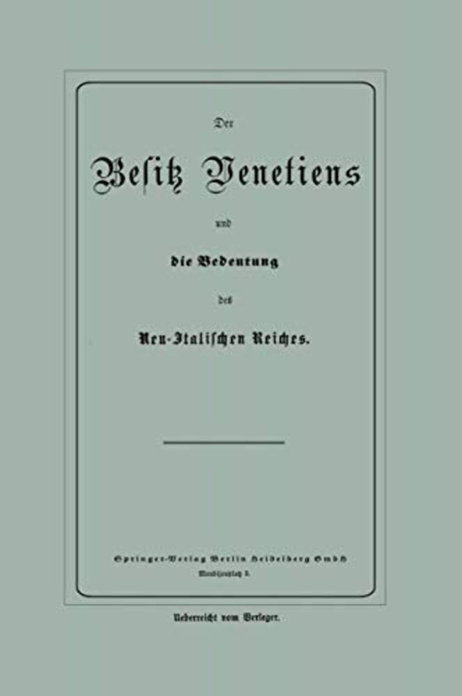 Der Besitz Venetiens Und Die Bedeutung Des Neu-Italischen Reiches-..