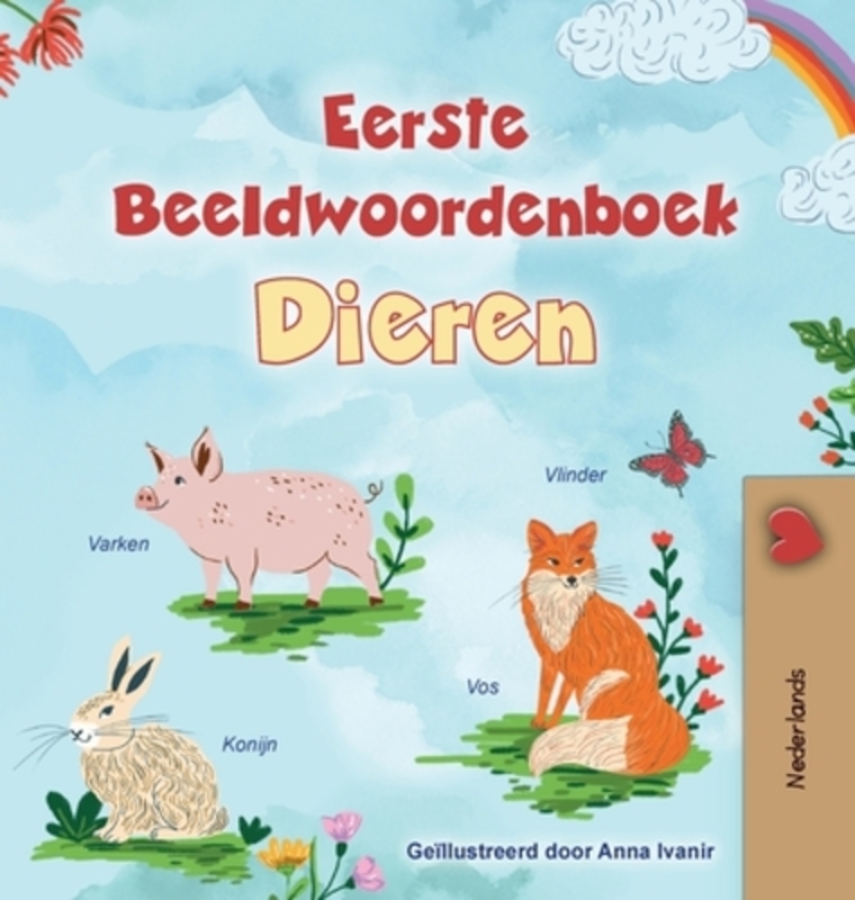 Dutch children's book. Discover the wonderful world of animals with this picture dictionary. Perfect for children ages 4 to 8, this book introduces a wide variety of animals - from lions and giraffes to frogs, parrots, and even unicorns. Each page groups animals by where they live or how they behave, making learning fun and easy to follow. Kids will explore animal names from all around the world - from jungles and oceans to farms and snowy lands. Each animal is shown with a colorful picture to help children recognize and learn new words. The book also has fun facts about animals! This book includes: - Over 150 animals and insects - Colorful illustrations for every word - Animal groups like pets, wild animals, and farm animals - A special section about animal babies and magical creatures - Fun facts that make learning exciting Perfect for little learners at home, in school, or during story time.