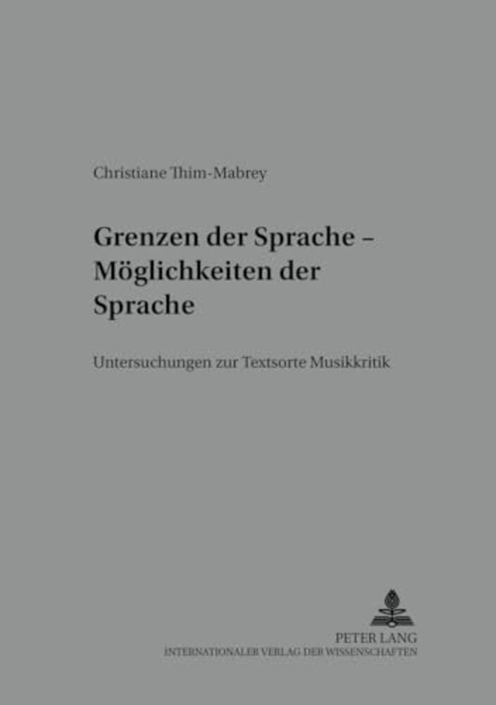 Grenzen Der Sprache - Moeglichkeiten Der Sprache: Untersuchungen Zur Textsorte Musikkritik-..