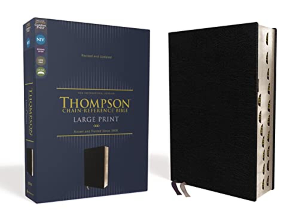 An easy-to-learn, easy-to-use tool for topical Bible studyWith over 100,000 references listed in the Bible's margins, covering over 8,000 topics, the Thompson(R) Chain-Reference(R) Bible is an ideal tool for comprehensive topical study. The chain-reference system enables you to search the breadth of Scripture's teachings on thousands of topics and allows you to follow those topics throughout the entire Bible. Beloved and acclaimed for more than five generations, this unique reference Bible is unparalleled in its ability to enrich personal devotions, topical study, and sermon preparation.The Thompson Chain-Reference Bible also offers a library of additional study resources, including biographical sketches, illustrated studies, maps, and charts. The alphabetical and numerical indexes make it easy to find any topic you wish to study, explore, or speak about. These tools together allow readers to interpret the Bible using related scripture passages rather than consulting a commentary.The NIV Thompson Chain-Reference Bible, Large Print is printed in Zondervan's exclusive NIV Comfort Print(R) typeface for easy reading. Expertly designed specifically to be used for the New International Version (NIV) text, Comfort Print offers an easier reading experience that complements the most widely read modern-English Bible translation. It also features a fresh, two-color design that preserves the original look of the chain-reference system, while making each page cleaner and easier to read. Features: Complete text of the accurate, readable, and clear New International Version (NIV)Easy-to-understand chain-reference system with over 100,000 topical referencesAlphabetical and numerical indexes highlight study materials for over 8,000 topics, each with its own topic number, for exhaustive topical studyAn extensive study resource section includes biographical sketches, illustrated studies of the Bible, a concordance, Bible harmonies, and many other helpful study toolsFresh, two-color page design66 book introductions16-page full-color map section with map indexWords of Jesus in redPresentation page for gift-givingGilded page edgesTwo double-sided 3/8-inch wide satin ribbon markersThumb indexed to make finding the books of the Bible easierBonded leather cover lies flat when openExclusive Zondervan NIV Comfort Print typeface10.5-point print size In 1890, creator of the Thompson Chain-Reference system, Dr. Frank Charles Thompson, began working on the "chain-links" that became the foundation of the unique Thompson referencing system. The Kirkbride Bible Company, Inc., published the first complete Thompson Chain-Reference Bible in 1908 and continued that legacy for over 100 years, adding visual, maps, archeological insights, and over 100,000 references. Now, Zondervan Bibles is excited to take the Thompson Chain-Reference Bible forward, and to continue to steward this important brand with new revised and expanded editions.