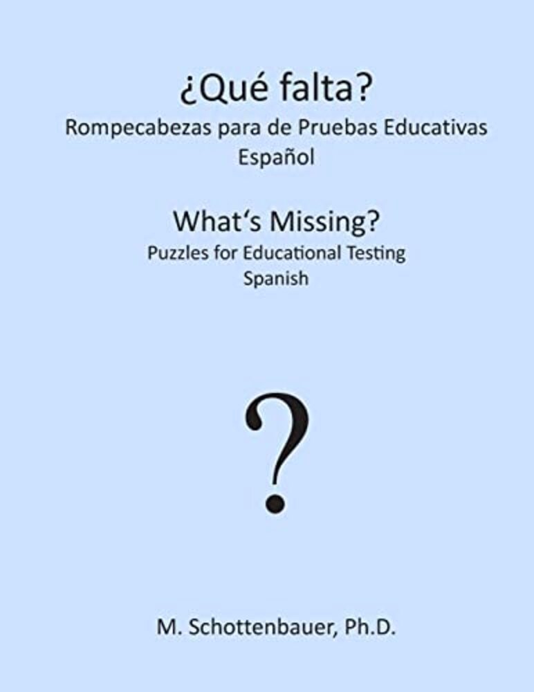 What's Missing? Puzzles for Educational Testing This series of "What's Missing?" presents new puzzles of graduated difficulty (easy to difficult) for educational settings. This book series can be used to screen for literacy, visual-spatial skills, simultaneous processing, gestalt perception, memory, and other cognitive skills among children, youth, and adults. Each book in this series presents the same puzzles in a different language, for comparison of language competency and cognitive skills across languages. (Note: At the time of publication, normalization data was not available.) What's Missing Puzzle Series: Books and Posters in over 60 Languages www.sites.google.com/site/schottenbauerpublishing/ Afrikaans, Albanian, Arabic, Armenian, Azerbaijani, Basque, Belarusian, Bengali, Bulgarian, Catalan, Cebuano, Chinese, Croatian, Czech, Danish, Dutch, English, Estonian, Filipino, Finnish, French, Galacian, Georgian, German, Greek, Gujarati, Haitian, Hebrew, Hindi, Hmong, Hungarian, Icelandic, Indonesian, Italian, Japanese, Javanese, Kannada, Khmer, Korean, Lao, Latvian, Lithuanian, Macedonian, Malay, Maltese, Marathi, Norwegian, Persian, Polish, Portuguese, Romanian, Russian, Serbian, Slovak, Slovenian, Spanish, Swahili, Swedish, Tamil, Telugu, Thai, Turkish, Ukrainian, Urdu, Vietnamese, Yiddish
