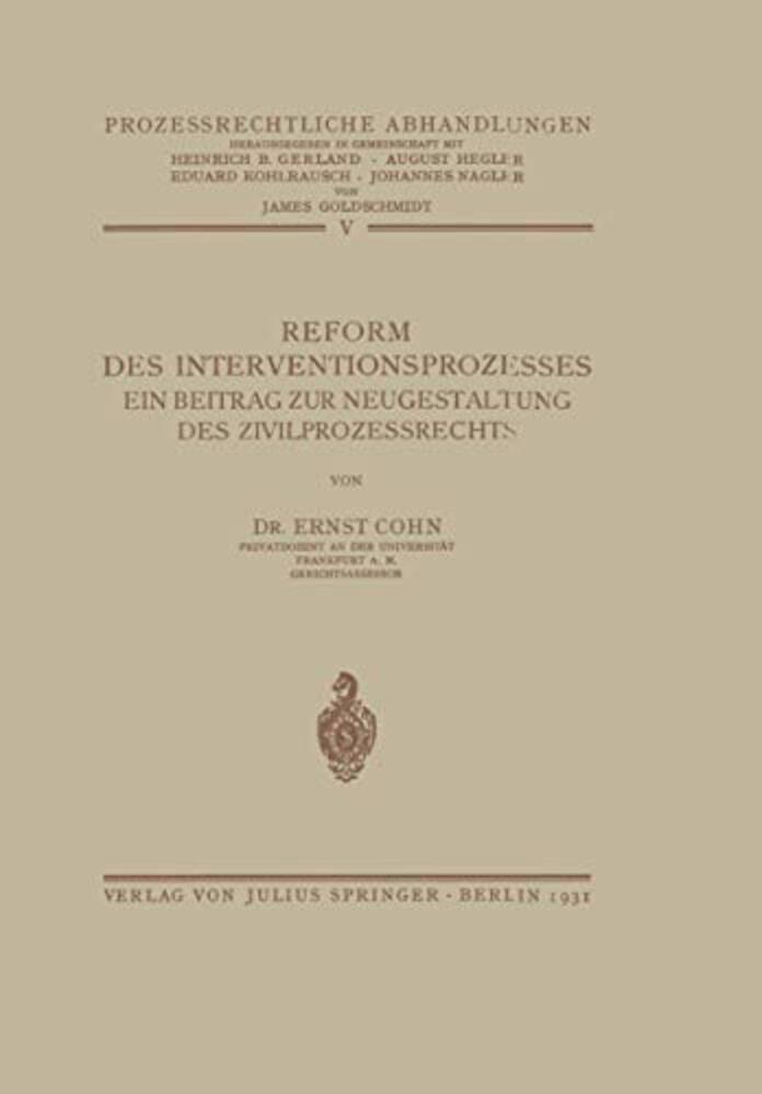 Reform Des Interventionsprozesses: Ein Beitrag Zur Neugestaltung Des Zivilprozessrechts-..
