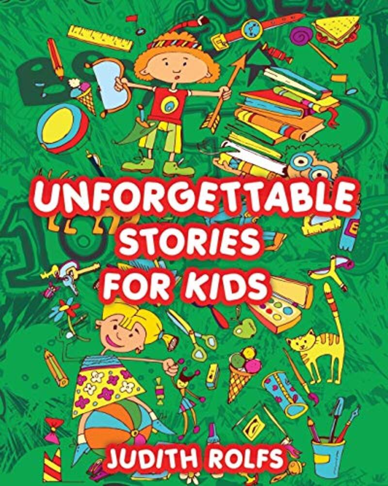 The incredible stories in the pages of Unforgettable Stories For Kids will touch children's minds and hearts in truly unforgettable ways. The character names in the stories give readers a glimpse into the imaginative world young readers will enter. Wodgets, Poppits, a mop named Godfrey that solves world problems, a creature named Wickella who threatens walkers in the woods until a boy finds his courage, a lovable Grandmother who amazes her granddaughter, Sarah Savelda, and a fighting angel named Kyler. The author uses time-tested principles of storytelling in Unforgettable Stories for Kids much like those used Grimm's Fairy Tales. Stories grab children with the same intensity as video games. This is true for every story in the Unforgettable Stories For Kids collection. Stories can be fun and still teach a valuable moral principle. Kids will absorb lessons about living the best way without overt teaching. Parents will appreciate the insights kids derive along with enjoying giggles and laughter. Your children will scramble eagerly into bed if you read them a different Unforgettable Story For Kids each night. These are the kinds of stories that can be read over and over again with joy. Order now and order often until every child you know has experienced the delight of these imaginative stories. An award-winning author, family counselor, mom and grand mom, Dr. Judith Rolfs, knows what kids care about and delivers delight in unexpected joy-filled ways. Parents will love the stories as much as their children do. Give every child you know the delight of reading these creative stories, then ask them if they might like to tell a story of their own. Twelve complete children's stories in one book! Destined to become classic tales: Wonderif and Wonderwhat Danny Dime Big Wickella and Giant blacktree Warrior Angel The Tickle Ring The Sandbox Dasheroos Poppits Hunting For Joy Wodgets Grannie's Secret Sarah Savelda A $120. value for less than $10.00. Order now. Click on the link.