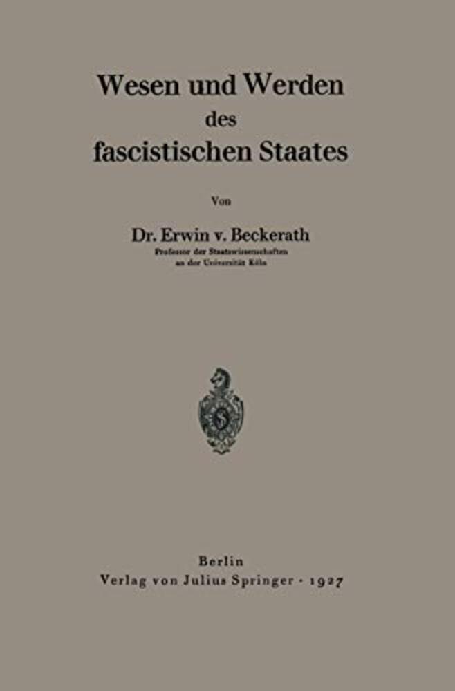Wesen Und Werden Des Fascistischen Staates-..